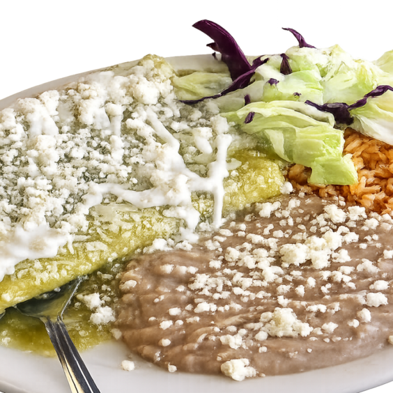 Soft corn tortillas filled with your choice of cheese, chicken, or steak, served with seasoned beans and topped with fresh salsa fresca.
