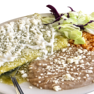 Tortilla chips topped with Mexican sour cream, cheese, onions, and your choice of eggs, shredded chicken, or beans.