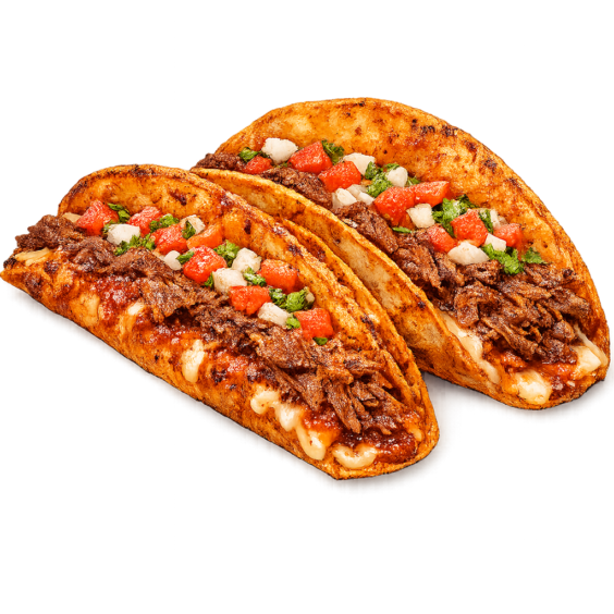 Crispy golden tacos filled with slow-braised birria beef, melted cheese, and our house special consommé sauce, finished with fresh pico de gallo.